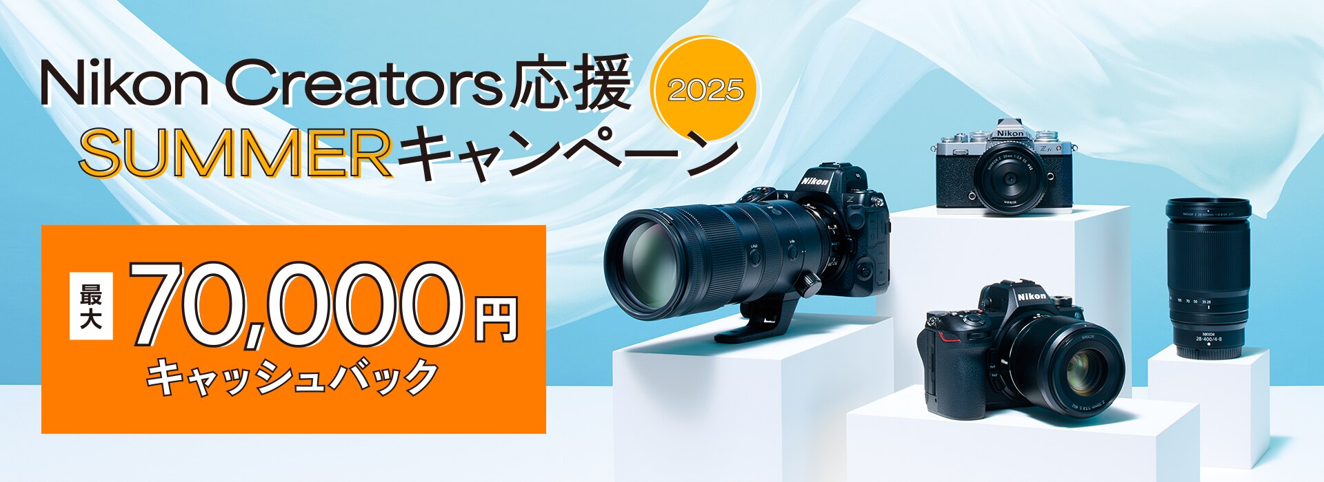 ※本キャンペーンは、上記のカメラとレンズ、アクセサリーを同時購入された場合にキャッシュバック対象となります。いずれか1点のみでの応募はできません。